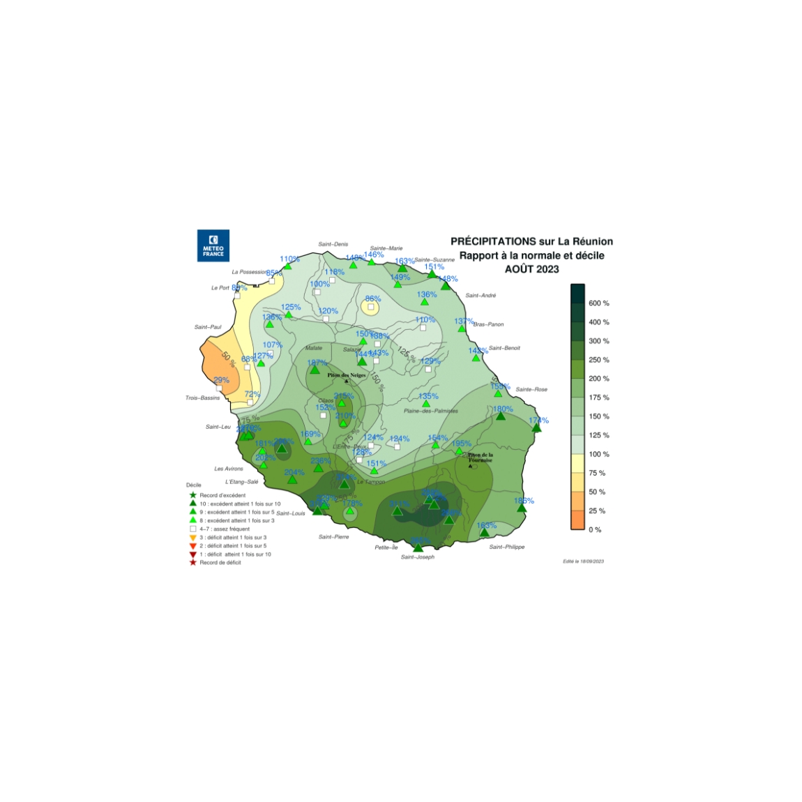 Le bilan moyen sur l’île est excédentaire de 75%. Les forts excédents se situent du Sud Sauvage à Ste-Rose.