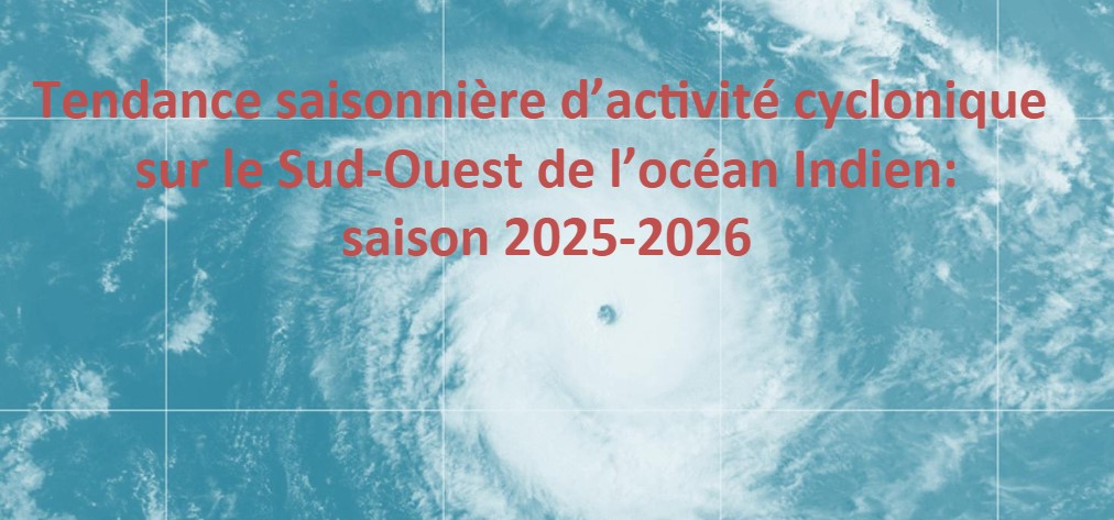 30/10/2025La saison cyclonique 2025-2026 devrait être caractérisée par une activité proche ou supérieure à la normale à l’échelle du bassin cyclonique du Sud-Ouest de l'océan Indien. On estime qu’entre 10 et 14 tempêtes (en incluant les 3 tempêtes déjà suivies) pourrait se développer, avec 5 à 8 d’entre elles atteignant le stade de cyclone tropical. Cette saison, les zones de genèses sont de nouveau privilégiées sur la moitié Est du bassin. On s’attend à des trajectoires cycloniques majoritairement paraboliques (d’abord orientées vers l’Ouest puis s’incurvant vers le Sud). Avec cette configuration privilégiée de type de trajectoires, si un risque cyclonique atténué est envisagé sur le nord du canal du Mozambique, les autres régions du bassin seront soumises à un risque d’impact à minima climatologique.